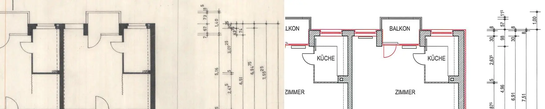 With the help of newest technologies we scan, trace and model old buildings and drawings as a reliable setting stone for your project development.