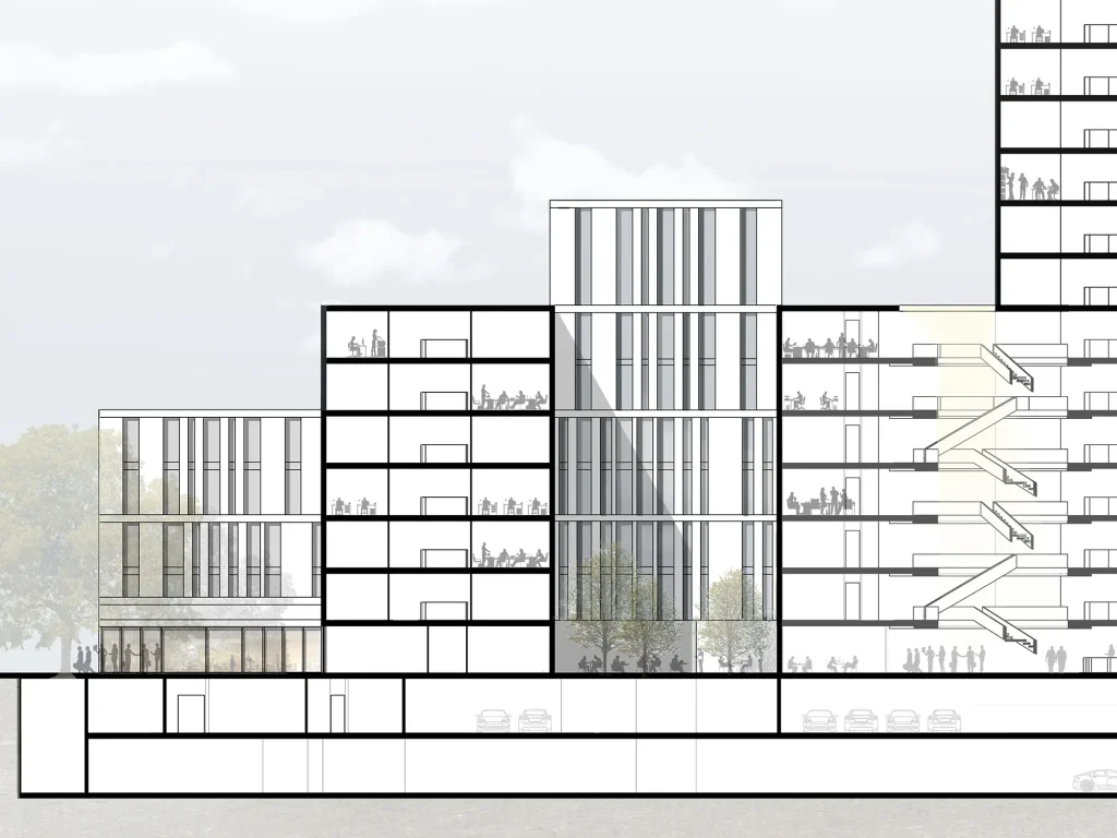 Keywords : floorplan, interior hub, office , sustainable, mixed use