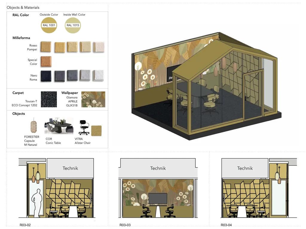 Keywords : eco-conscious material, color inspiration, interior , design, presentation