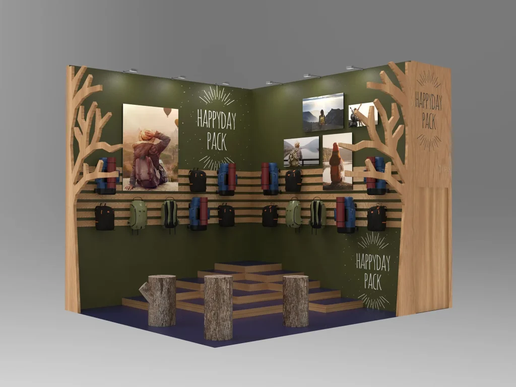 Keywords : concept design, 3D configurator, prefab stand, backpack , temporary structure
